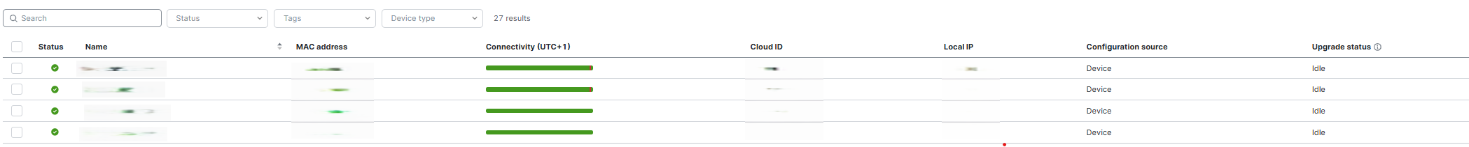 On peut visualiser l’ensemble des switchs avec toutes les informations importantes : adresses MAC, nom du switch, état de la connectivité et adresse IP. Ensuite, selon le switch sélectionné, il est possible d’accéder à de nombreuses informations supplémentaires que je ne peux malheureusement pas montrer.